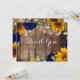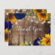Solros och marin Ro Rustic Tack, tack. Ett underbart kort där du kan säga tack för allt, bröllop, födelsedag och mycket mer! Har gult solblommor med röd ros och vitt baby utandning över en rustisk träbakgrund. Vänd ljus på toppen med ett hjärta.