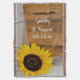 Anpassa den charmerande solrossen och Möhippa Veil-Landsbyggsbröllopet Throw med namn från briden- och brudgummen och giftermål-ceremonin för att skapa en keepsaksgåva till en förlovningsfest, möhippa eller bröllop. Den här avslappnaden, som ändå har en anpassningsbar, är ett färgfoto av en gult solrosliknande blommar och en vit möhippa med en vävsbrunlingad bakgrund, med en blommigt av bröllop.
