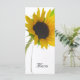Anpassa söt Solros på vit Bröllop-meny med de uppgifter om måltiden som du kommer att vid din repetitionsmiddag, möhippa luncheon eller giftermål-mottagning genom att lägga till sallad eller första kurs, kurs eller andra kurs och dessert eller tredje kurs. Anpassa den med namnen av brudgummen, platsen och händelsemedatum. Den här elegant blommigt bröllop-menyn innehåller ett botaniskt foto av en gult solrosblomma blommar på stjälken i ett vas av glas med en ljusvit bakgrund. Perfekt för paret som planerar en klassklass juni, juli eller augusti sommar eller september, oktober eller november faller under bröllopstema.