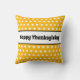 Rolig höstslängkudde med vita prickar på en bakgrund i pumpapajsfärg och en stor vit cirkel med en vacker solros- och pumpabild som svämmar över cirkelns kant. "Happy Thanksgiving" står på baksidan i ett vitt band.