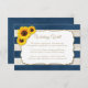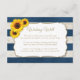 Sommar bröllop vill ha ett bra kort med solblommor och marint blått rand. Underbar för land lada bröllop eller andra evenemang i vintage stil.