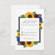 Utformningen har solblommor, ro och vilda blommor av elegant med en gyllene gult-, burgundy- och blå färg-palett. Utformningen har även ett kol-grått-ram. Du kan ändra bakgrunden färg framtill och tillbaka till färg efter eget val eller lämna båda inställda på vitt.