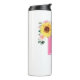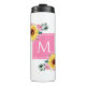 Denna vackra botaniskt inspirerade termisk tumlare har en modern utformning av trendiget av vattenfärgade solblommor och rosa ros, perfekt kompletterad med en aning eucalyptus löv foliage. Den har en första brev med monogrammet, lägger till en personlig beröring och skapar den som en underbar presentidé för någon speciell.