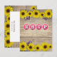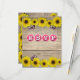 Rustiskt, avvandt trä med solroshuvud av gult överst och grund med rosa fjärilskarvar. Rosa och vit flaska- OSA- typografi. Mallen skapades för OSA på baksidan. #rustic, #sunblommor, #butlecaps, #Landsbygd