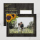 Solrosbukett på mörkbrun elegant lada trä foto spara datum bröllop postkort. +++++++++ Lätt att anpassa med era namn och text! ++++++++++ Lämplig för blomster sommar eller höst / trädgård bakgård rustic landsbygd eller bondgård bröllop.