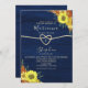 Solros Rustic Navy Blue Bröllop Inbjudningar