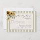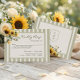 Denna svarskort för solros passar vackert till din bröllopsinbjudan med sin romantiska blommiga design och tidlösa, eleganta layout. Med gyllene solrosor, mjuka elfenbensfärgade blommor och grönska mot en varm krämfärgad bakgrund med en rand i salviafärgad rand, är det perfekt för rustika, trädgårds- eller utomhusbröllop.