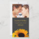Bröllop spara datum-fotokort med solrosfoto. Du kan enkelt ändra teckensnitt, färg, storlek och placering genom att klicka på knappen Anpassa.