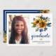 Inbjudan till vattenfärgsboho navy & gult studenten med en klassisk vit bakgrund som kan ändras till vilken färg som helst, ett foto av student, en visning för blommigt av solros, fjädrar och en studentfest. Du hittar matchande objekt längre ned på sidan, men om du inte kan hitta det du tittar för kontaktar du mig.