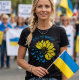 Vänligen #stöd #Fred #för #Ukraina och #slut på #krig nu med detta meddelande på tskjortan och #solros bild #Ukrainsk och #Värld #symbol för #Fred i #Ukrainska #flagga #färger.