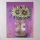 Vattenfärg och akrylmålning, som representerar en vintage som är målad vas fullt av färska solblommor.