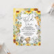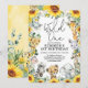 Fira din lilla vilda en som fyller ett med denna fantasifulla djungelsafari-inbjudan. Designen presenterar en grupp söta safari-djur, livfulla solrosor och rustik grönska.