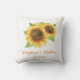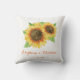 Den här kudden har solblommor. Anpassa den med namn och datum. Denna kudde ingår i uppsamlingen av solrosfärger i Bröllop, som omfattar matchande bröllop-kontorsmaterial som svarskort, informationskort, adressetiketter, klistermärken, program, möhippa och mycket annat. Besök insamlingssidan för att se det produktsortiment som du kan anpassa för bröllop.