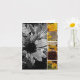 En solros som tas i svartvitt med viktig i färg. Insida "tänkande av dig.",