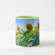 Söt mugg har mitt originalfoto på en rad solblommor i ett fält med blå himmel, som bearbetats med en imponerande vattenfärgsteknik för ett konststycke stil. Handtaget och innanför kopp är en ljust grönt ton som kompletterar teckningen. Det här är 11 uns mugg, bara den perfekt som är storlek för ditt bryggkaffe eller te - eller till och med hett choklad! Det skulle vara en underbar gåva och man kan lägga in paket med kaffe, tepåsar eller hett choklad. En annan presentidé är att lägga en liten växt i den för att göra extra speciellt för din älskade.