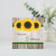 En elegant inbjudan till solrosbröllop. Med rustiskt barrträ med grönt faux ribbon och gult solblommor. Perfekt för ett landsbyggsbröllop, solros bröllop, lador bröllop och mer!Utformningar är tryckta illustrationer/grafik - INTE FAKTISK RIBBON.