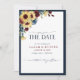 Skapa perfekt bröllop spara datum-kortet med den här söten, moderna designen med en solrosfärgsfärg, marinblå och burgundisk blommigt motif och handskrivna manusskrivna skrivstipografi. Kortets baksida innehåller ditt favoritfoto på förlovningen. Kontaktdesigner för matchande produkter. Inbjudningskort för Elegant av upphovsrätt, alla höger reserverade.