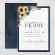 Skapa perfekt bröllop spara datum-kortet med den här söten, moderna designen med en solrosblå blommigt i vattenfärg och handskrivna skripttypografi. Kontaktdesigner för matchande produkter. Inbjudningskort för Elegant av upphovsrätt, alla höger reserverade.
