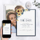 Solrosblå skript, Blommigt Bröllop spara datum Datumet