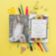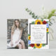 Utformningen har solblommor, ro och vilda blommor av elegant med en gyllene gult, röd och ljusblå färg-palett. Utformningen har även ett kol-grått-ram. Du kan ändra bakgrunden färg framtill och tillbaka till färg efter eget val eller lämna båda inställda på vitt. Fotomall licensierad via Pixabay under CC0 och måste ersättas med ditt eget foto