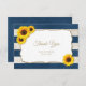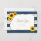 Rustic bröllop tackar dig för kortet med solblommor och marint blått rand. Underbar för sommarstugan land bröllop och andra vintage stil tillfälle.