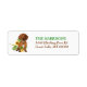 På den lämnat sidan av dessa söta returetiketter finns en bild av en rödbrun Dachshund-Hund bland spridda solblommor. Din anpassningsbar är i grönt och brun vid högerna.
