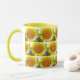 Njut av din favoritdryck hett eller kall i det här kaffet mugg som innehåller en omslutningsbild av en stor solroshuvud av gult och som är tryckt i ett upprepande mönster. En underbar blommigt. Markera mugg storlekt och stil efter behov.