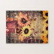 Det här är ett vackert fall/tacksamhet/thanksgiving-pussel för behållan du har underhållit när vädret börjar bli kallare. Detta är en land/vintage stil-design av målade solblommor och ord "Beviljansfull tack" i ett upprepat mönster i bakgrunden.