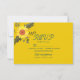 Boho, elegant, botaniskt, modernt kort för gult av blommigt med solros, menyval och trendig-skript.