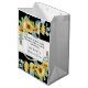 Du kommer att kärlek de medelstora presentpåsarna som mäter 7" L x 4,5 W x 10" H eftersom de är ett underbart sätt att välkomna gåvor/paket eller till och med bröllopsfavörer med dina gäster i bröllop. Uppdatera dem enkelt med din namn och ditt personliga meddelande med den lättåtkomliga mallen för använda, innan du placerar dem i din kundvagn. På framsidan och baksidan finns samma design - vackra solblommor på en svart elegant med texten.