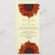 En enkel höstbröllopsinbjudning med en orange solrosa överst och grund med hälften av varje pejling. Anpassa texten mellan blommor med information om bröllop. Inbjudan visas på metallisk guld-papper. Formuleringen är från brud och groom. Leta efter andra variationer på Rosa Schoolhouse. Leta också efter matchande artiklar i kategorin"bröllop butik" i Rosa skolhus.