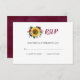 Dessa svarskort har vattenfärgsolblommor med burgudisk ro och löv. Anpassa dem med din egen text. Matchande objekt är tillgängliga. Besök insamlingssidorna i vår butik för att se bröllop-sviten.