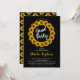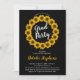 Soliga solrosor krans och mönster guldgul och svart boho Gradueringsfest inbjudningar. Originaldesign av Holiday Hearts Designs (alla rättigheter förbehållna).