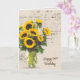 Ljust gul solrosbukett i en glassvas på tegelvägg abstrakt för 99-årsdagen.