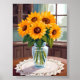 Solrosbukett Vattenfärg Blommig Gul Målning Poster