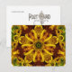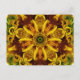 Originalfotografi av en solros, kalejdoskopplad in i en intensivt mättad design från färg