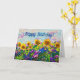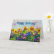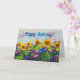 Originalfotografi av solblommor framför fält av solblommor. Frontens stater "Grattis på födelsedagen!" och inuti stater "Bästa önskemål för en dag av solljus och lycka för en speciell människa - du!" för en trevlig för barn eller vuxna i hälsning. Fotografiet ger speciella effekter för att markera ett grafiskt målat stil. Du kan lägga till mer text som du vill eller lämna som den är!