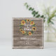 Rustic och elegant bröllop sparar datumet med ett vackert solrosvand och en träbakgrund. Anpassa den med en QR-kod på baksidan som dina gäster kan söka igenom för att enkelt öppna webbplatsen för bröllop.