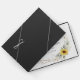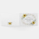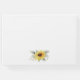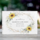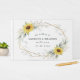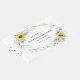 Konstruktionen har vattenfärgsmörjmedel, solblommor, tryckt guld inslag och botaniskt löv över ett tryckt guld färgad geometriskt ram. Baksidan har en passande grön och solrosliten bukett.