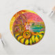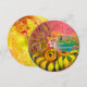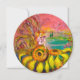 En livfull magisk fe spelar harpa på solrosorna och en färgrik fjäril på glänsande guld... Akryl- och akvarellmålning med gyllene folie.
