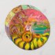 En livfull magisk fe spelar harpa på solrosorna och en färgglad fjäril växt i gnistrande guld ...Akryl- och akvarellmålning med gyllene folie .