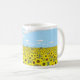 Ett vast fält av gula solrosor sträcker till horisonten. Fåglar flyger though det.
