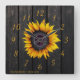 Rustic land stil-väggklocka med gult guld solros över en mörk brun lingbakgrund. ++++++++++++ Anpassa den med din familj namn och text! +++++++++++++ Det kan vara en vacker keepsaké för din familjedag, bröllop, pardusch, uppvärmning i hemmet.