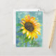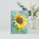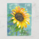 Ett vykort av söt som dekoreras med solrosblomma av solsken i gult som är färgad med en mjuk akablåbakgrund.