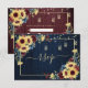 Skapa perfektens bröllopsinbjudan OSA med den här varma, trendig solrosformen, marinblått och burgnytt vattenfärgsdesignen, som har marinblå och burgundisk träbakgrund, söt ljus och handskrivet manusformat. Det finns två versioner på den här OSAN som inte har några måltidsalternativ. Oformaterade vita kuvert ingår (matchande returetiketter tillgängliga i samlingen). Kontaktdesigner för matchande produkter. Copyright Elegant Inbjudan, alla höger reserverade.
