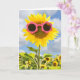 Rosa solglasögon på solrosor i fält på väns födelsedag.