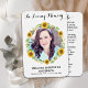 Modern solrossympati för begravningskort. Det här enkla minneskortet för böner i elegant har en modern utformning av solblommor i eukalyptus grey och elegant. "In Loving Memory" Anpassa det här minneskortet för begravning med dina nära foto, namn & data och känslor. Tillbaka ~ 'Miss Me' Dikt, som kan vara personlig, var snäll och nå ut om du vill ha en annan design än en specifik dikt. Det här minneskortet kommer att vara en välkänd keepé, för begravningstjänster och firande i livet. COPYRIGHT © 2020 Judy Burrows, Black Hund Art - Med alla Höger reserverade. Solrosfonens fotobegravningskort