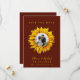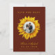 Elegant bröllop sparar datumkortet med en solrosa i gult guld med ditt foto inuti, briden och rummets namn, datum och webbplats över en burgundisk bakgrund. +++++++++ Lämpligt för modern land sommar eller höst som faller utomhus, trädgård, ladugård eller bröllop. +++++ Observera att färg kan ändras. Om du behöver anpassa den i ett visst färg av text och/eller bakgrund kontaktar du designern genom att klicka på MESSAGE nedan.