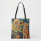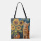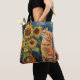 Solroskatnip Dreams Tote Bag - En lekfull twist på Van Goghs koniska solrosmålningar. Föreställ dig en nyfiken katt som är kapslad bland vibrerande solrosor, som med blixt snurrar blommarna. Den här charmerande väskan blandar klassiska konst med modern stollig och fångar glädjen hos en katt som är förtrollad av naturens skönhet. Perfekt för att lägga till en aning roligt och färg när du klipper ut. Det är en must-have för både konst älskare och kattentusiaster.