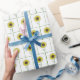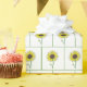 En pulserande solros med klara petaler av gult och ett texturerat brunt centrum framställs mot en vit bakgrund med grönt gräns. Gräns färg kan ändras.